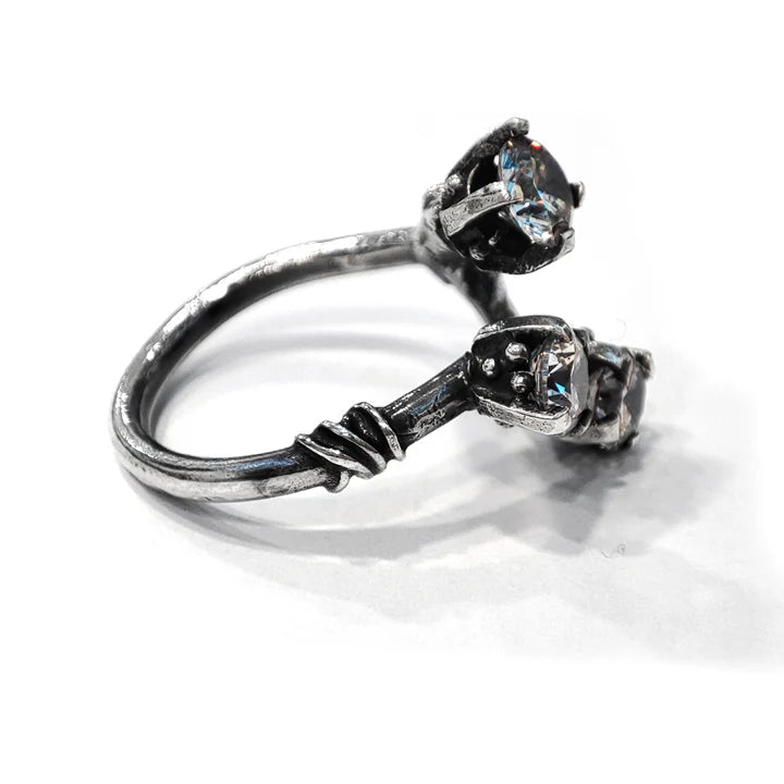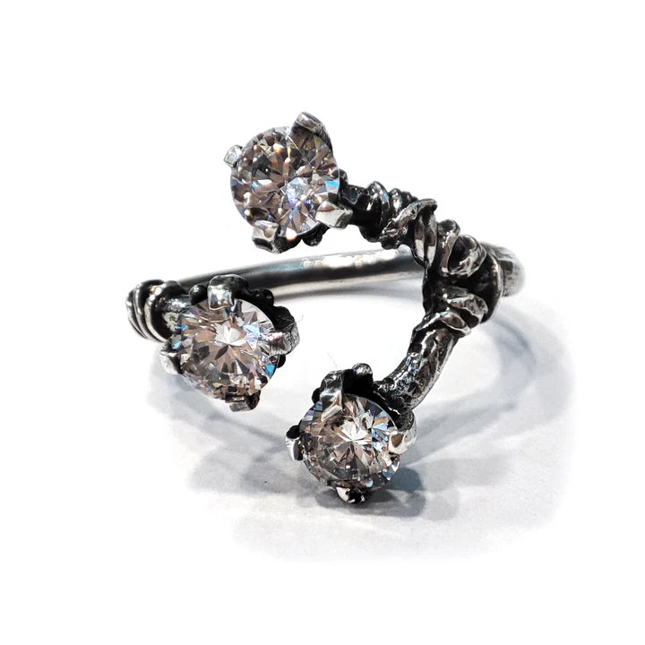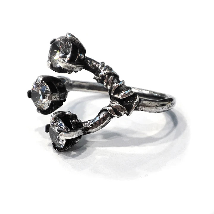 Anello in Argento 925% e tre pietre taglio brillante, ossidazione nera anticata.