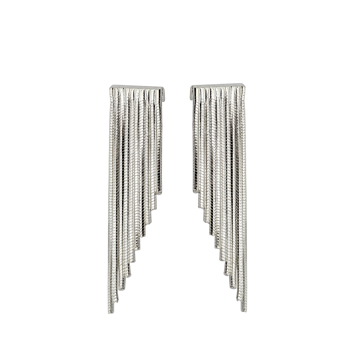 Pair of hoop earrings with fringes in 18k gold plated brass, hand-finished two-tone diagonal plating.